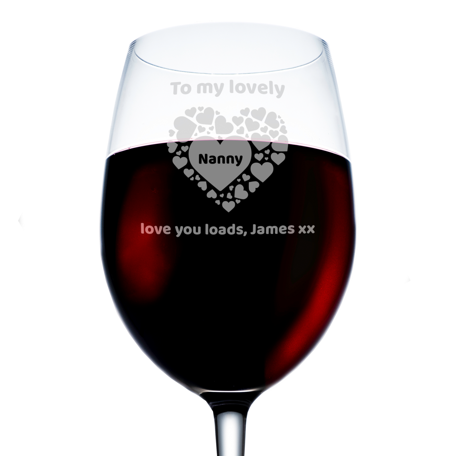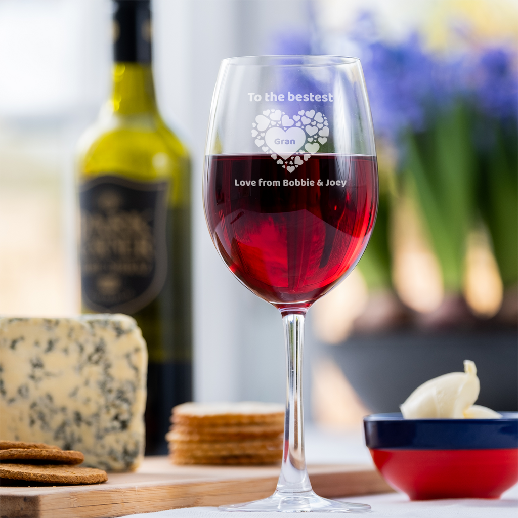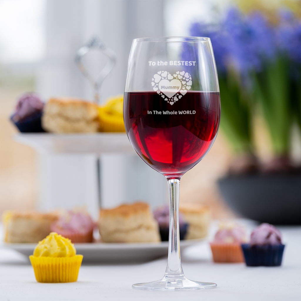 Beautiful Hearts design: Let your Mum know you think she is the best ever with this personalised heart wine glass.
