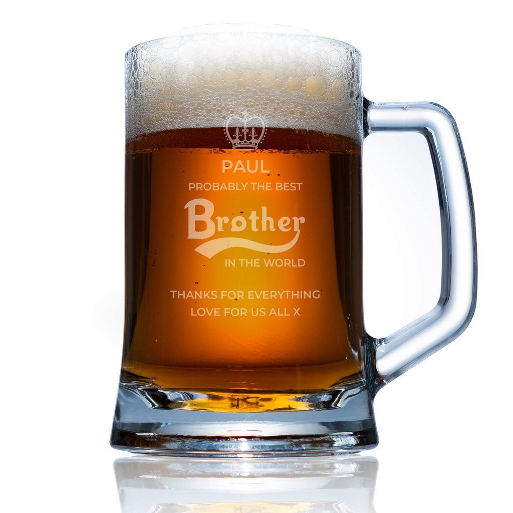 Probably The Best Brother In The World Personalised Glass: The perfect gift for a one in a million Brother; whether you choose the pint or the tankard this personalised gift will be enjoyed long after their special day.