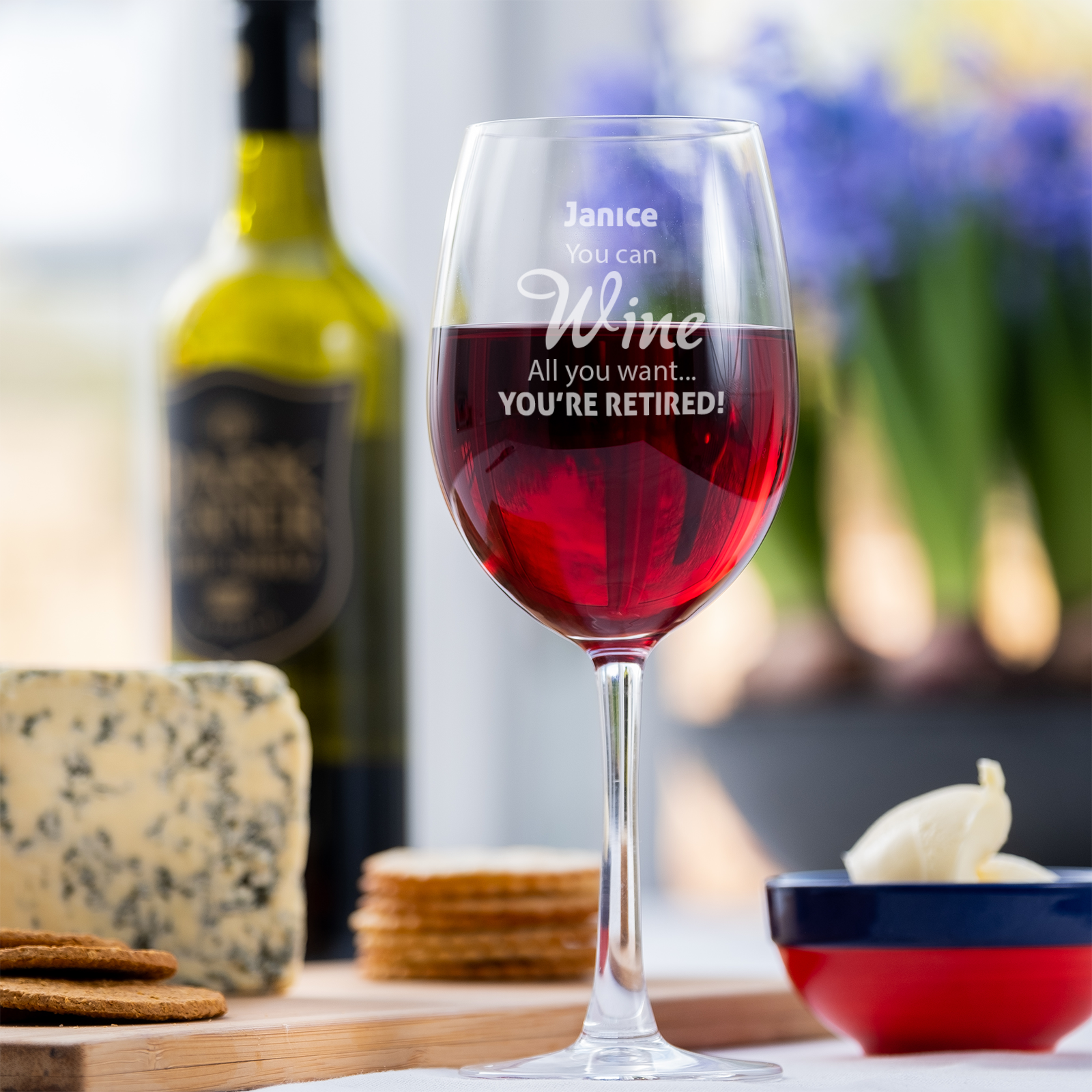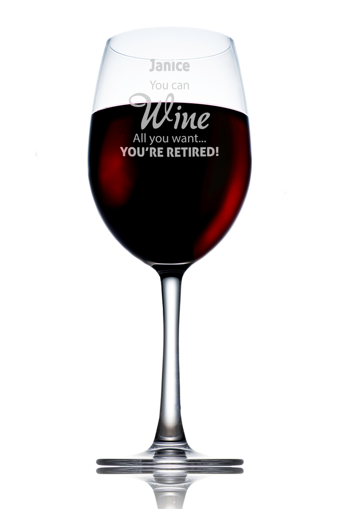 Bold Text Design: With eye catching "You Can Wine All You Want You're Retired" lettering, expertly laser engraved to include your chosen recipients name.