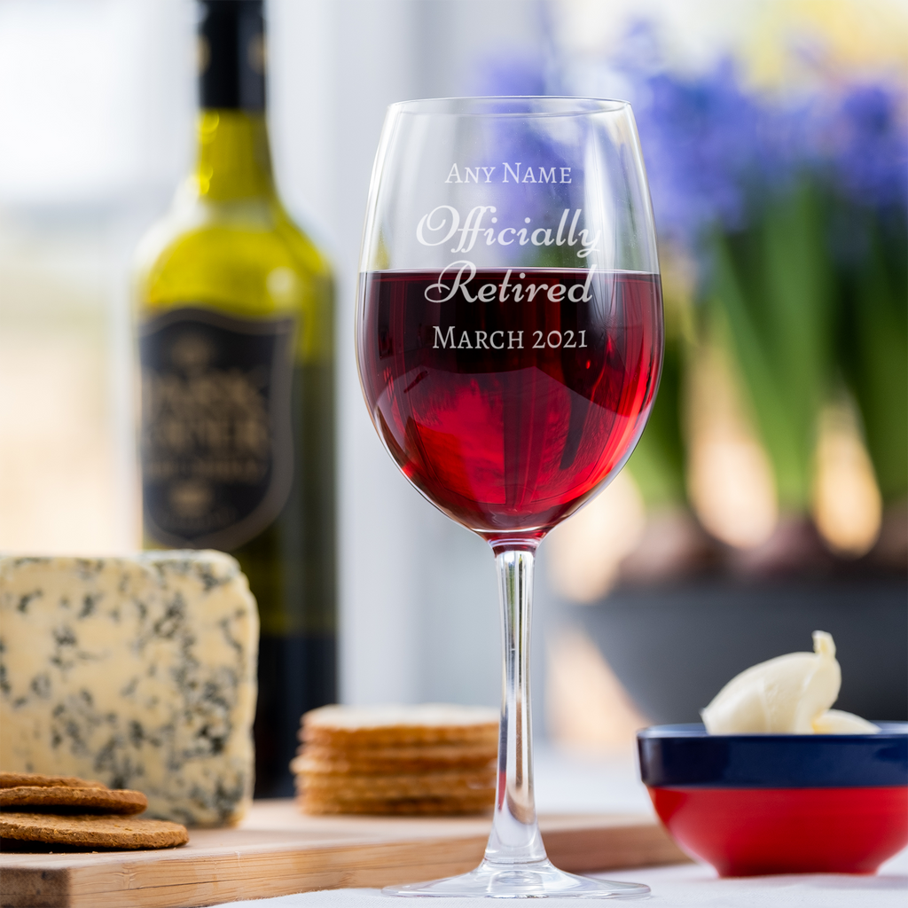 The retirees name can be added above the design and a short personalised message or retirement date can be added below to make this glass uniquely theirs.