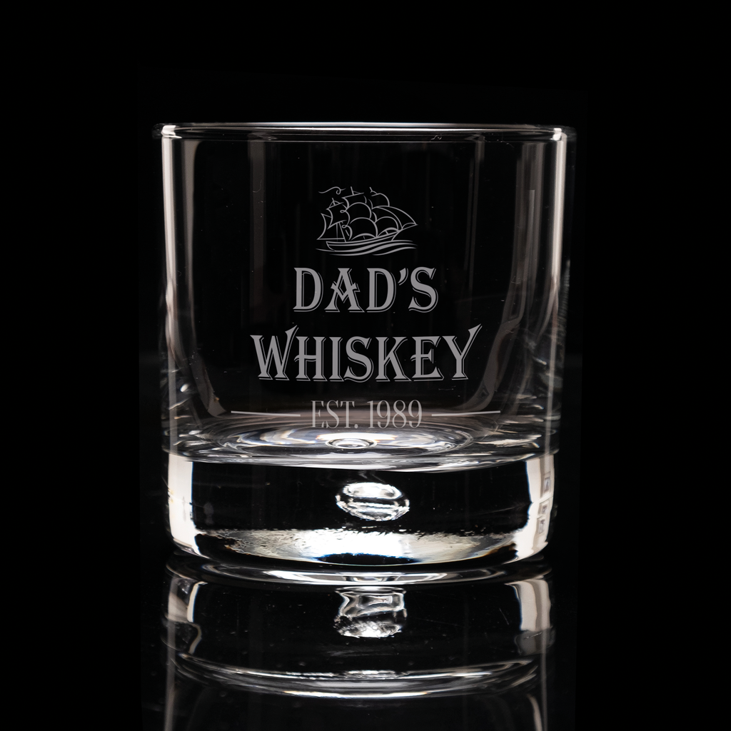 Introducing our classy personalised boat design whiskey glass. Personalise your glass with a year established, ANY drink type and the name of the drinker then they're ready to enjoy that nice tipple on the rocks.