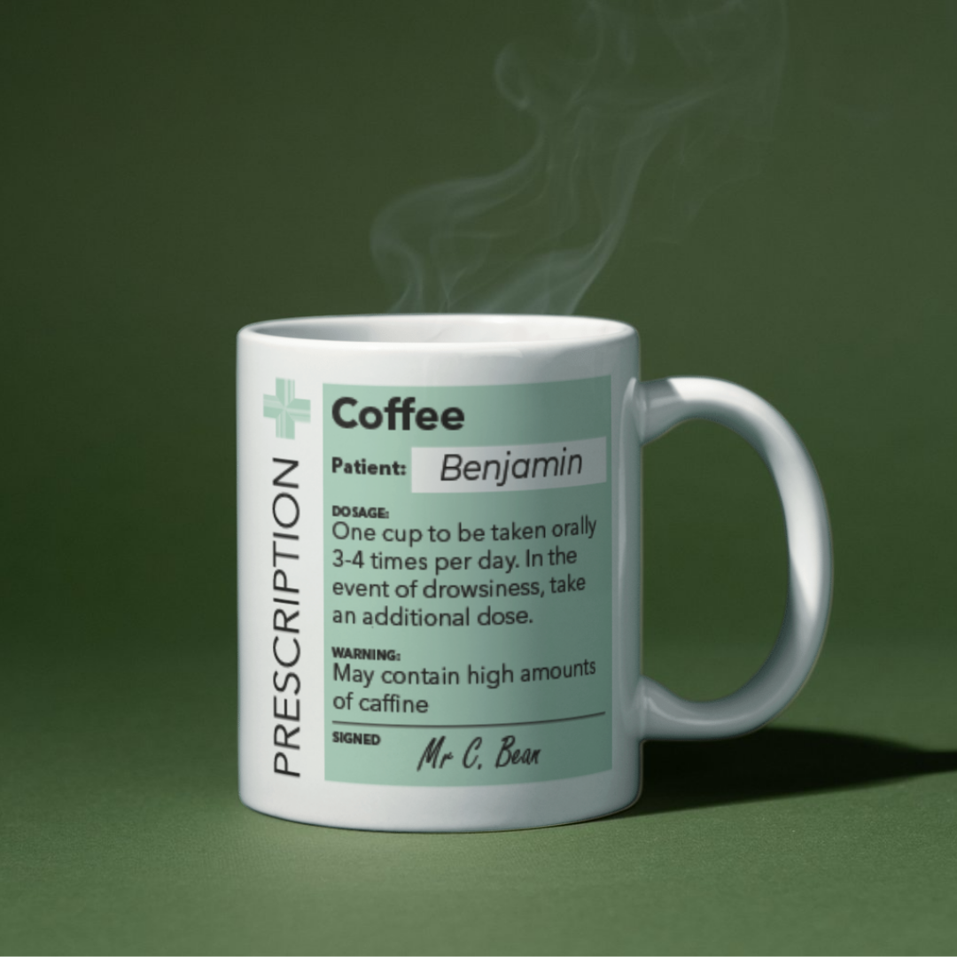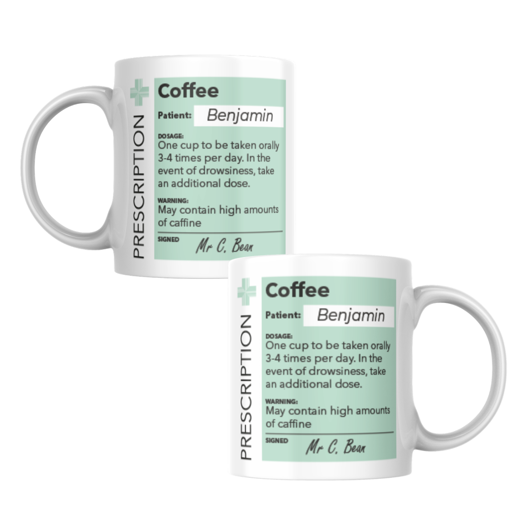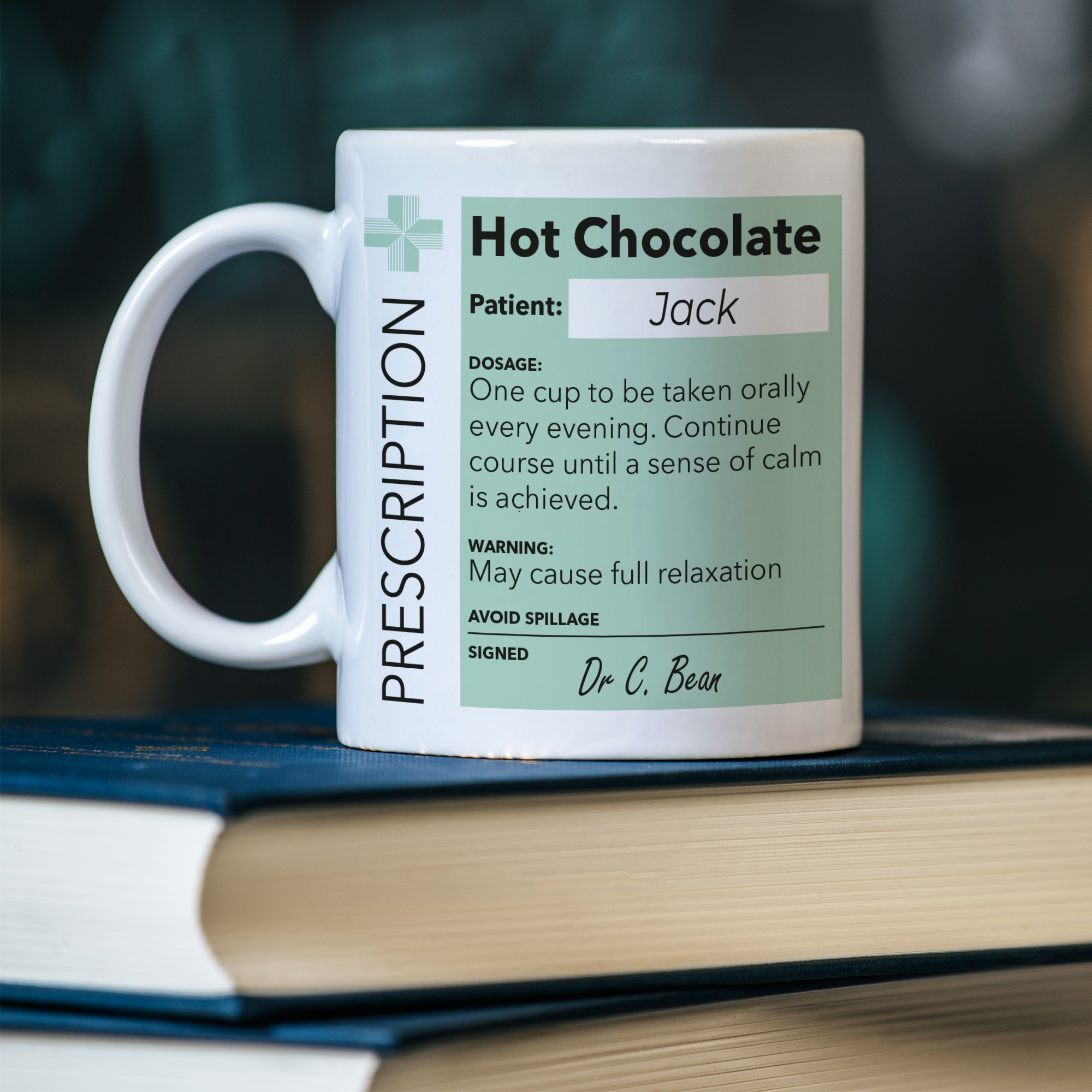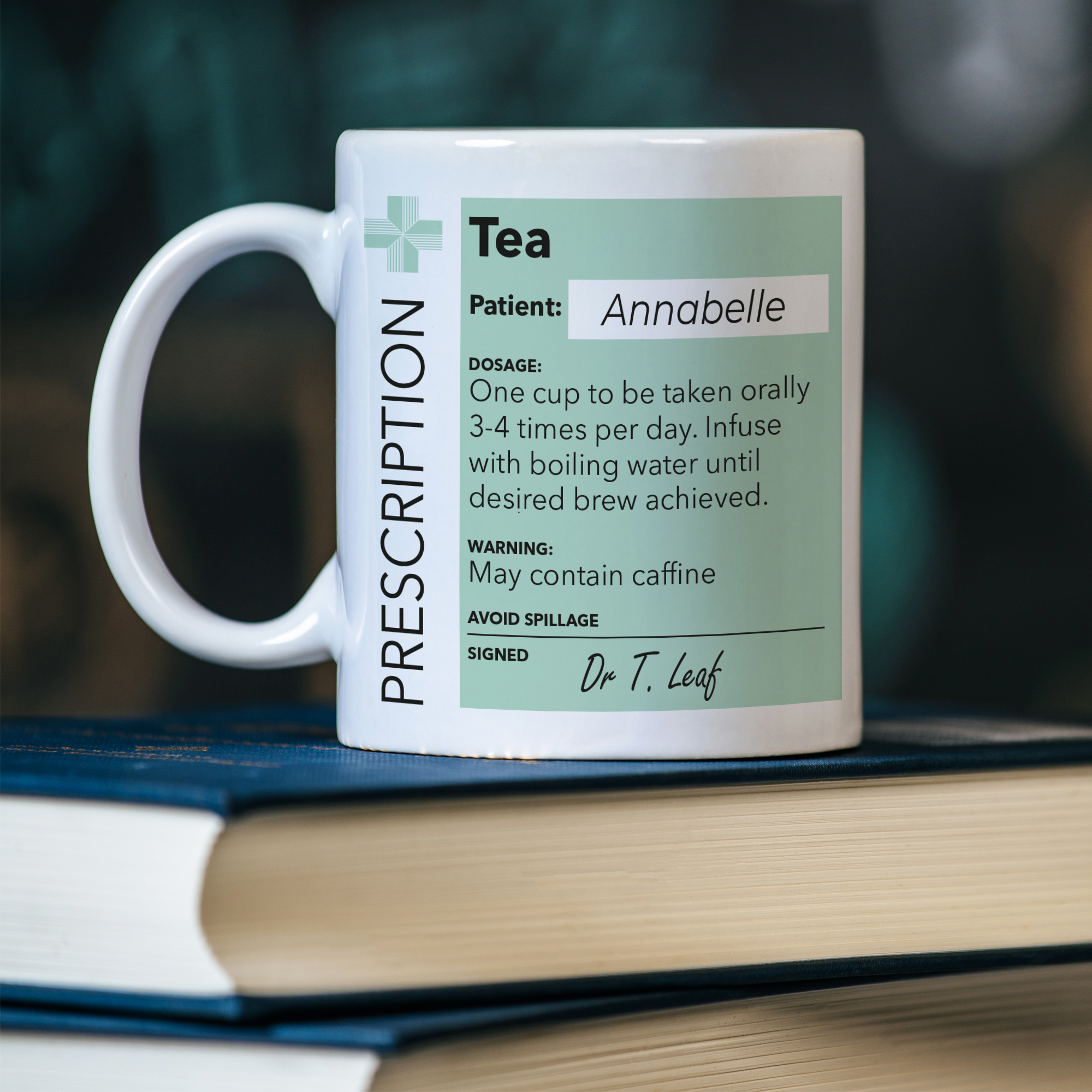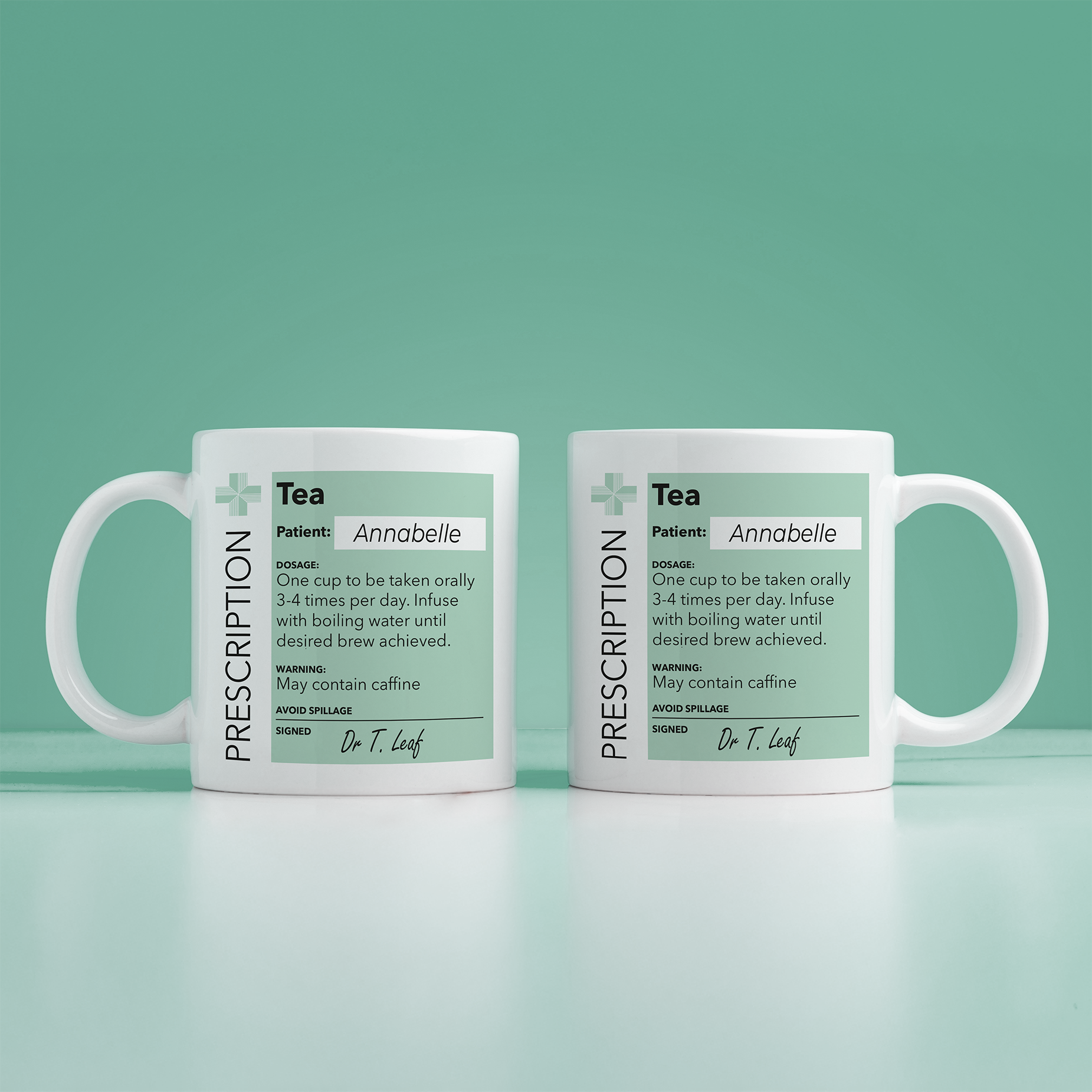 Personalised Novelty Prescription mug - Choice of Coffee, Tea & Hot Chocolate Themes - Fully customise who the patient is and who prescribed it.