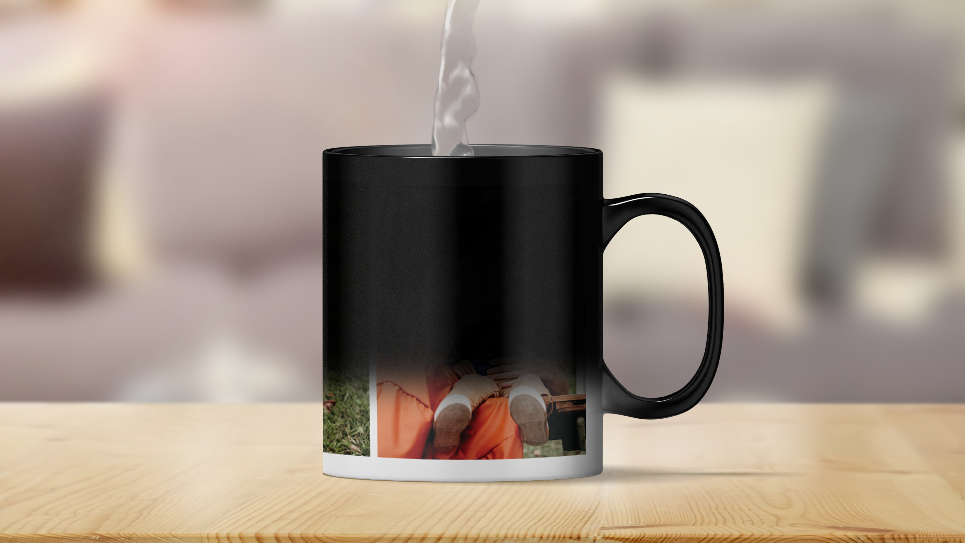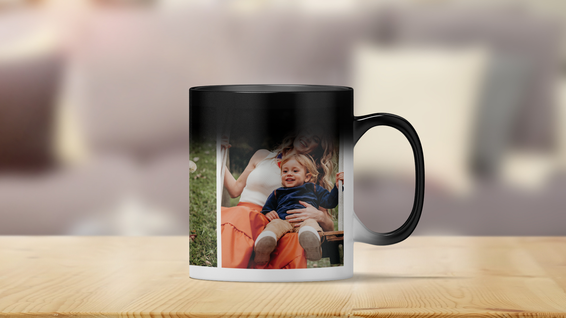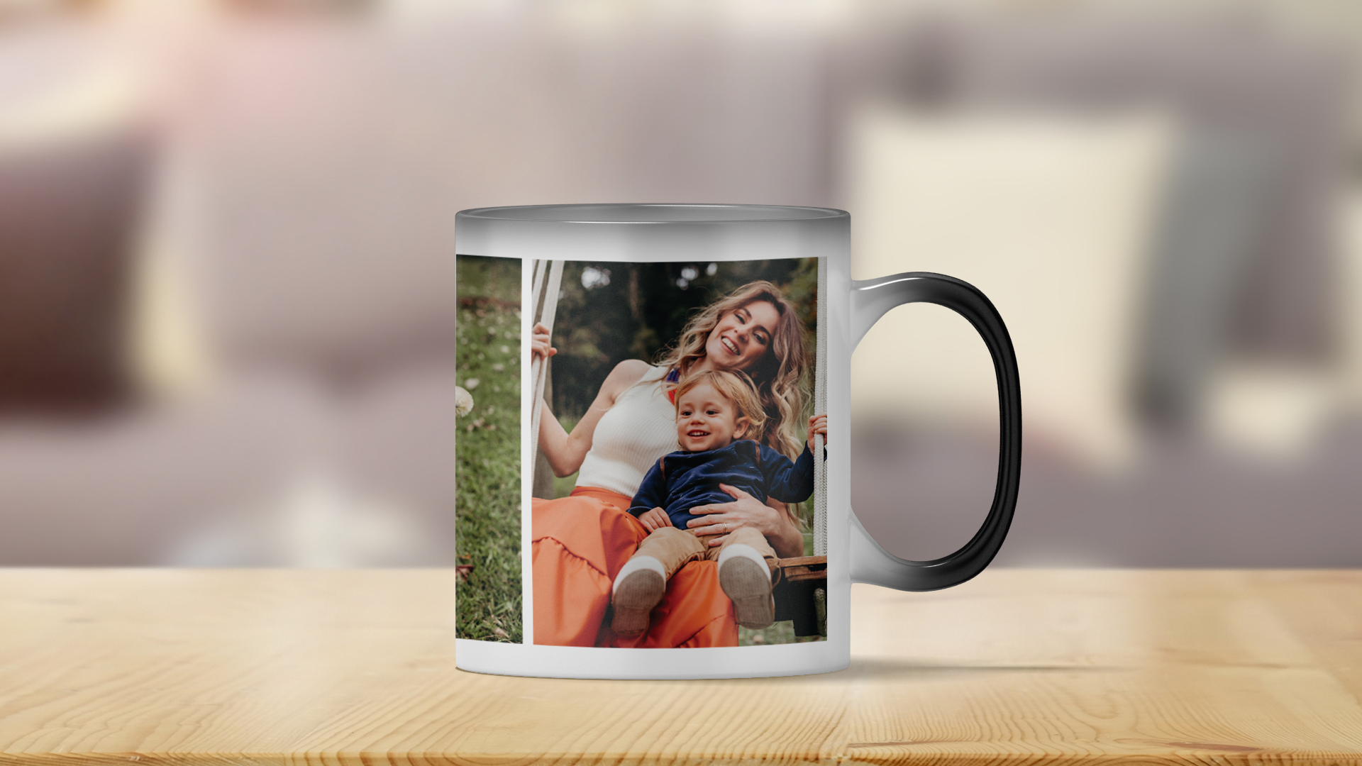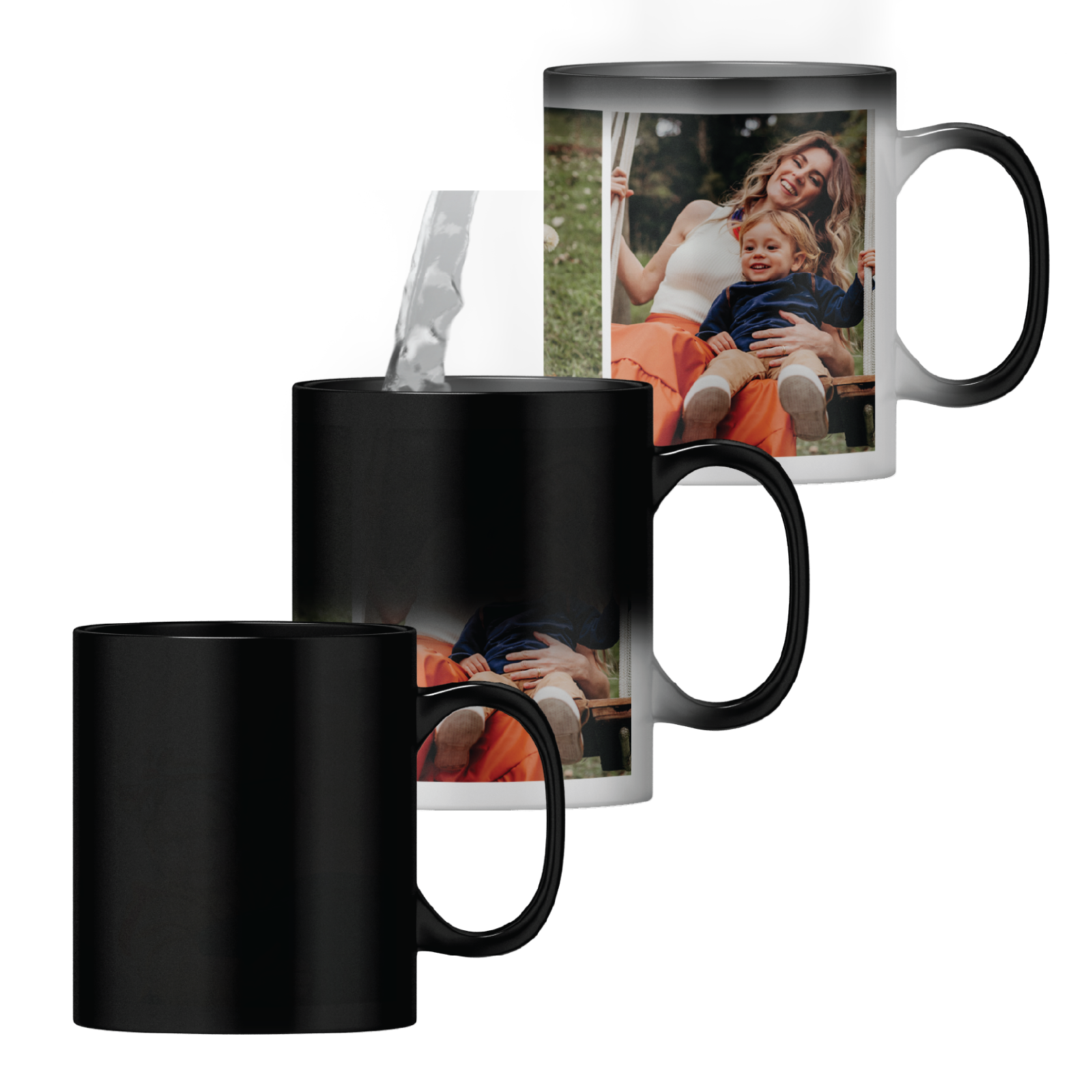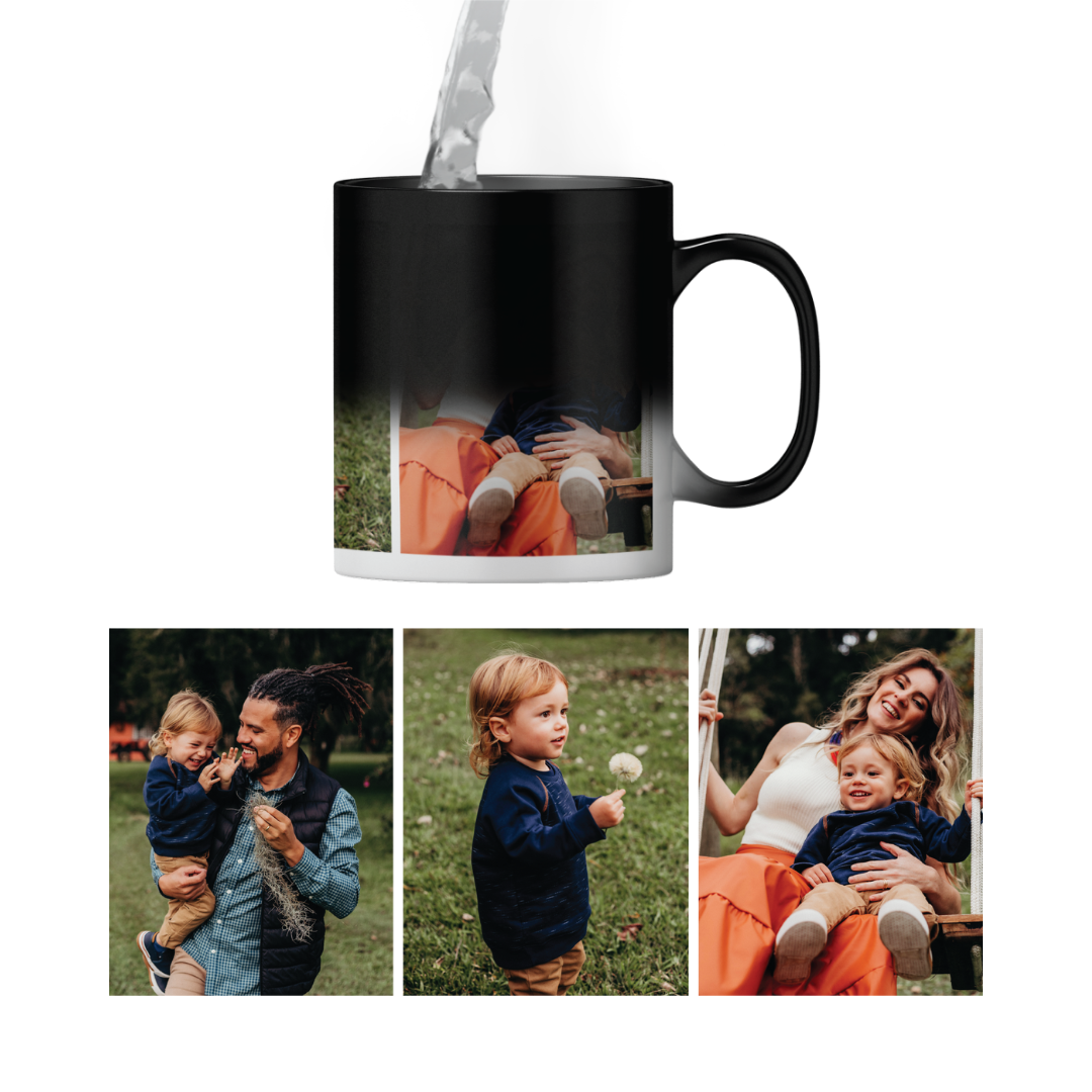Personalised 3 photos magic heat changing mug. The design appears when you add hot water - like MAGIC! Create a beautiful, thoughtful photo mug to fit any recipient, for any occasion! Upload 3 of your favourite photos to make a truly unique gift.