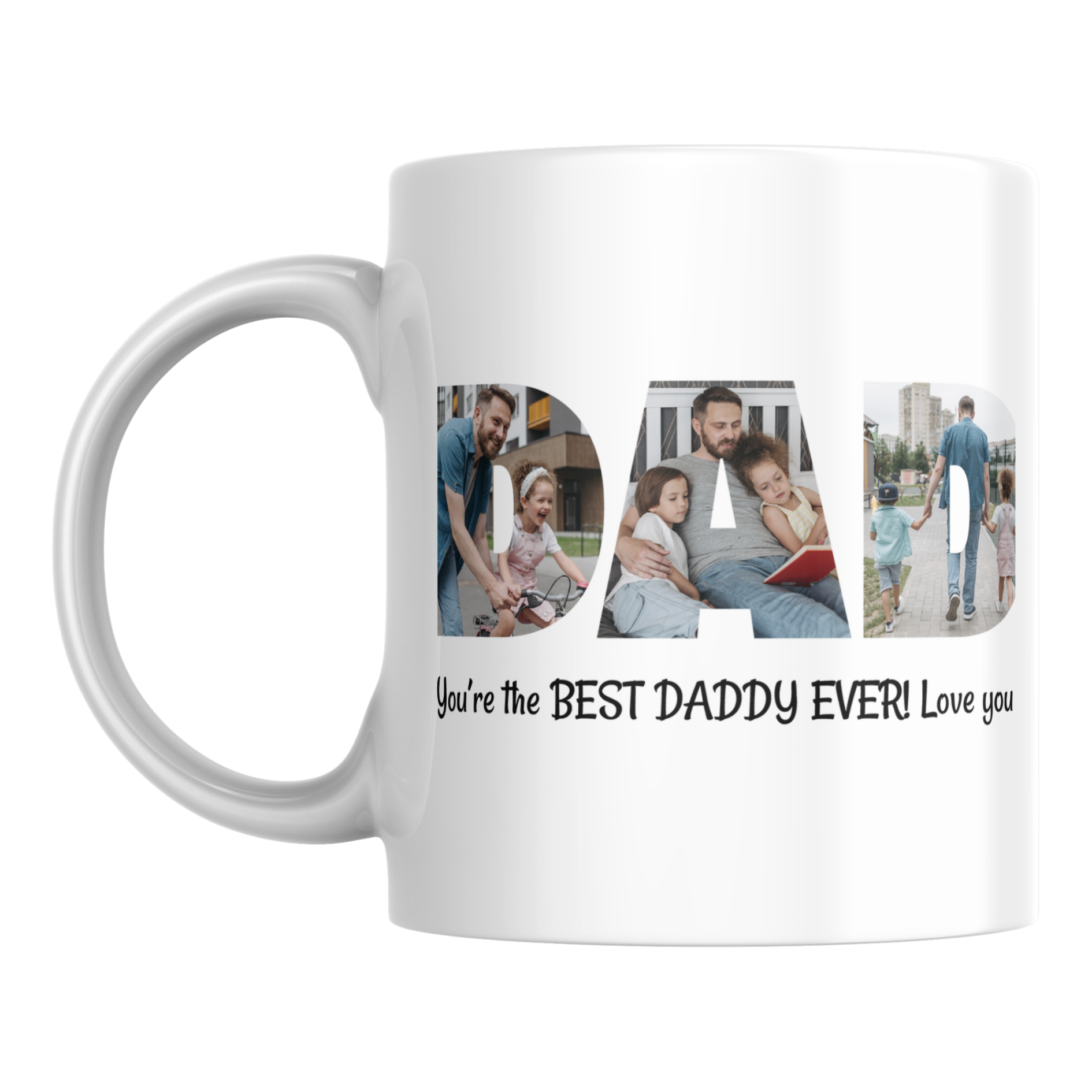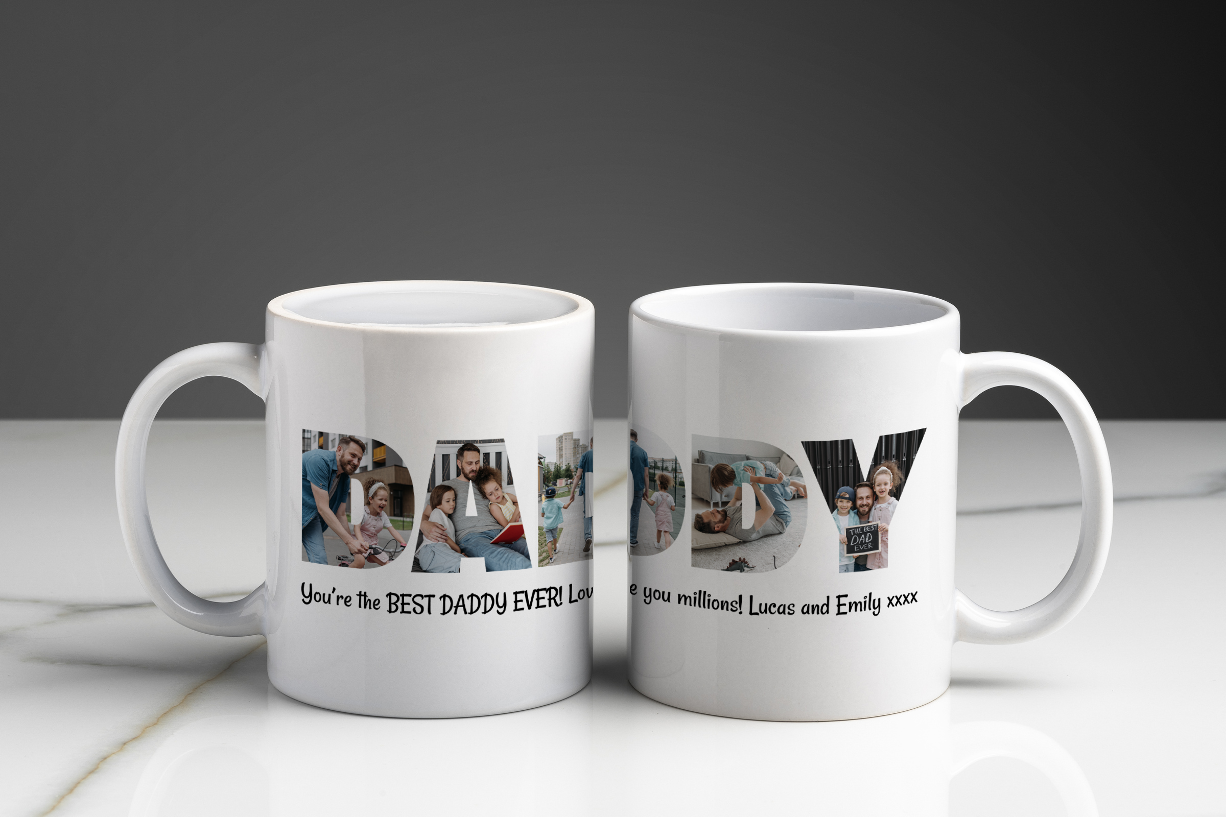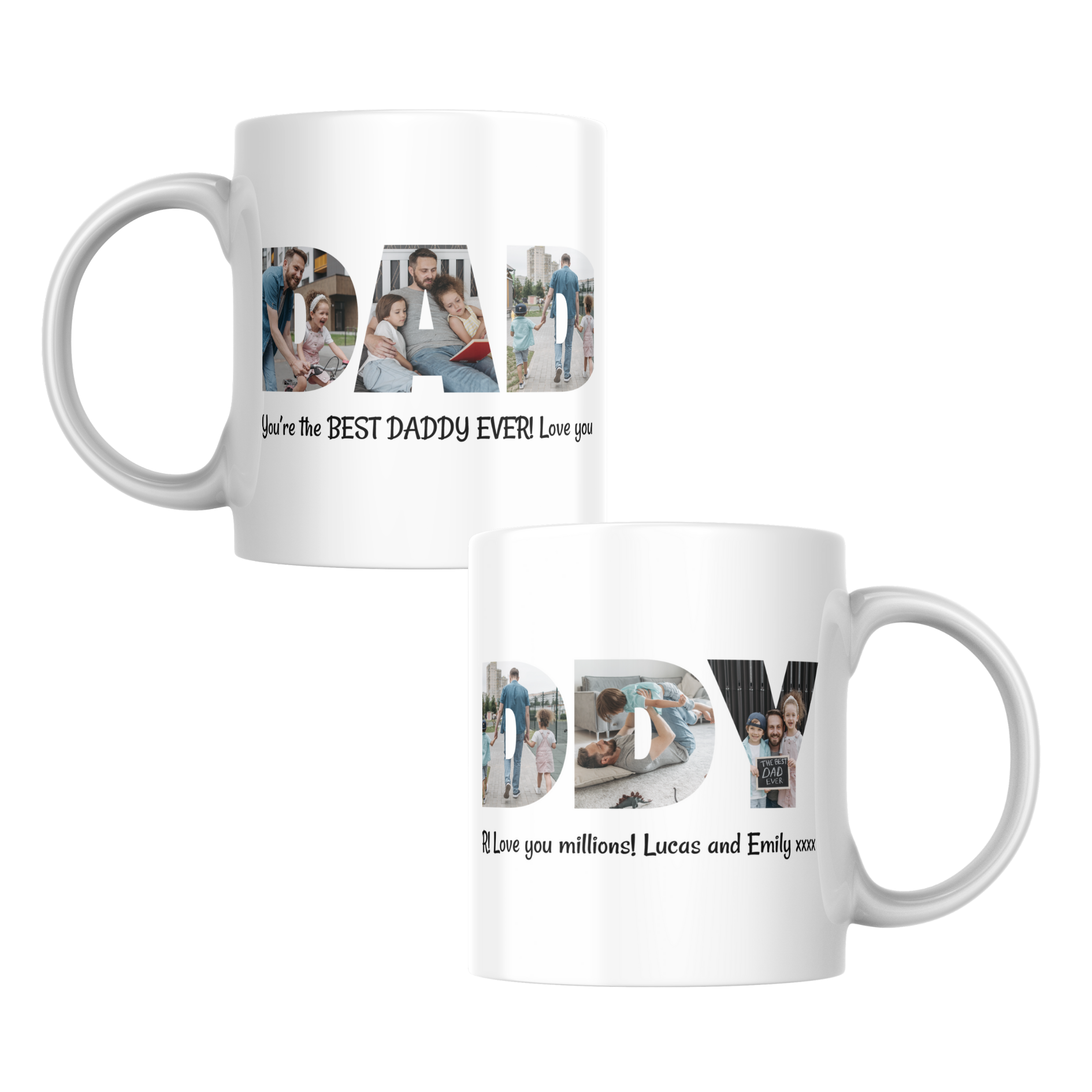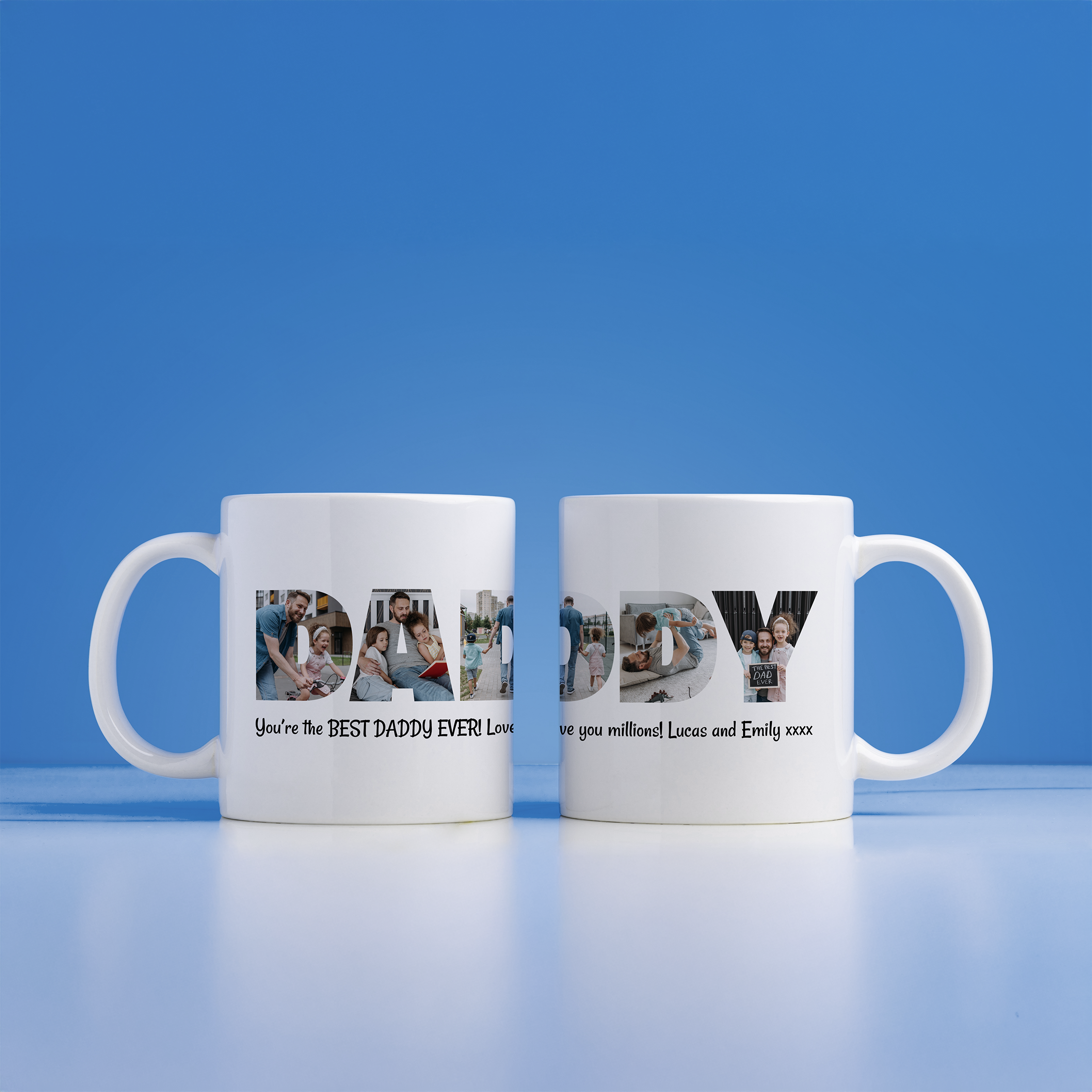 Personalised Photo Mug With Message For Daddy - With Five Shaped Photos and one line of personalised text. You choose the five photos and message to personalise this photo mug with, making it a truly unique and thoughtful gift for any time of the year.