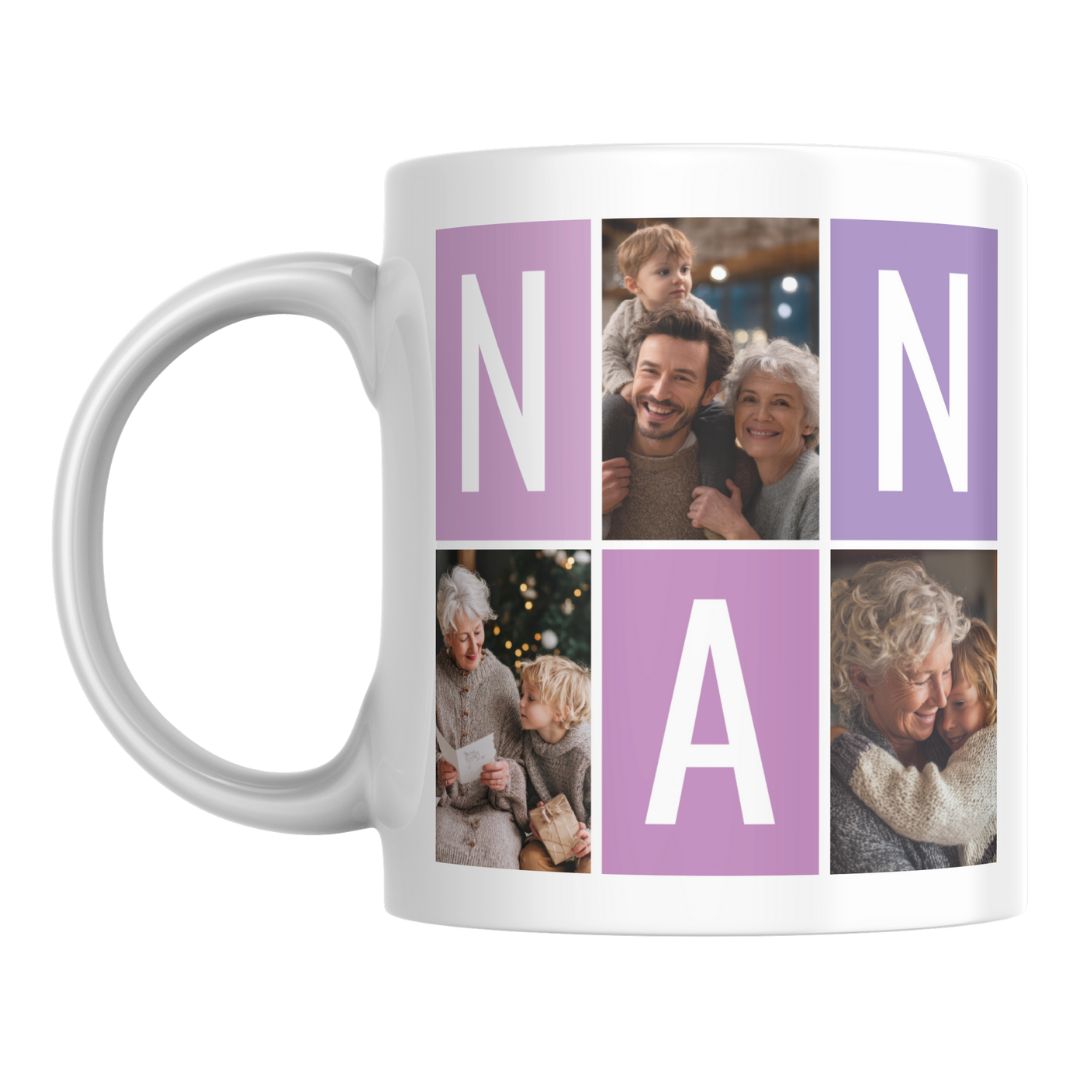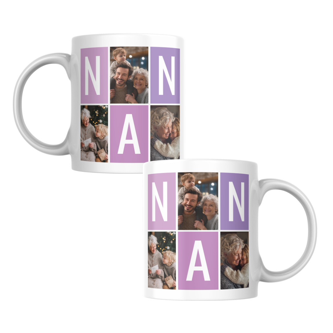 Personalised Photo Collage Mug For Nan - With Three Photos. You choose the three photos to personalise this collage mug with, making it a truly unique and thoughtful gift for any time of the year.